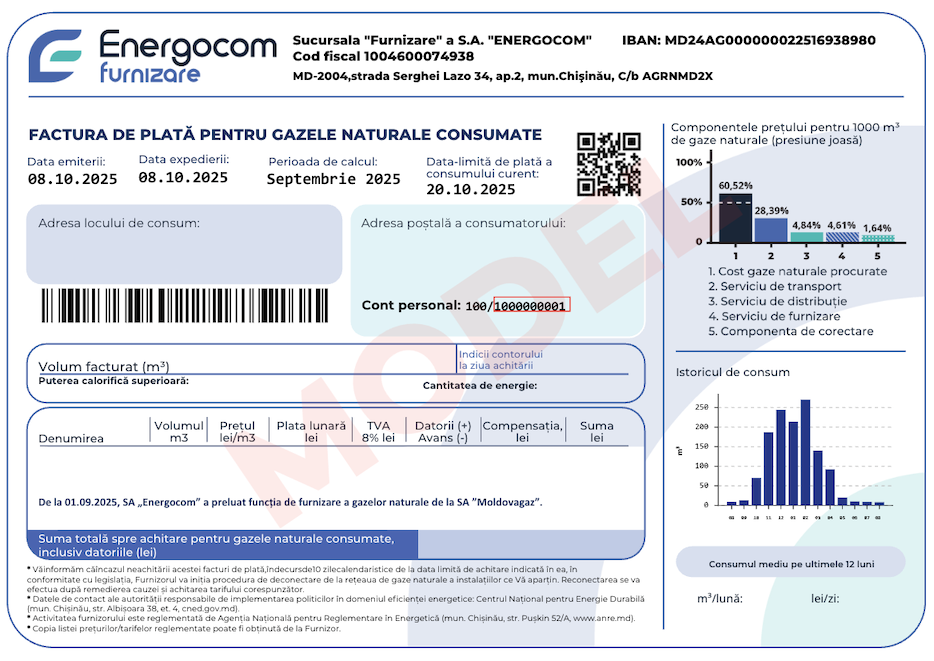 Energocom Furnizare informează consumatorii de gaze naturale că, începând de luni, 6 octombrie, vor fi emise primele facturi aferente consumului din luna septembrie. Procesul de facturare rămâne neschimbat. Facturile vor ajunge la dumneavoastră prin poștă sau email, exact cum s-a întâmplat până acum.